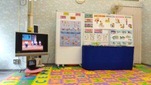 待機時間は週末イベント「イングリッシュカーニバル」の映像が流れていて、0歳・2歳ともに釘付けになっていました。